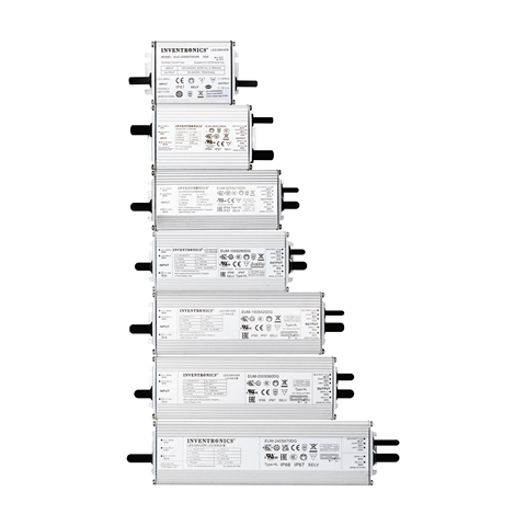 Inventronics eum-dx serisi 30W-500W LED sürücü 100-240Vac IP66/IP67 500W kapasiteli güç kaynağı
